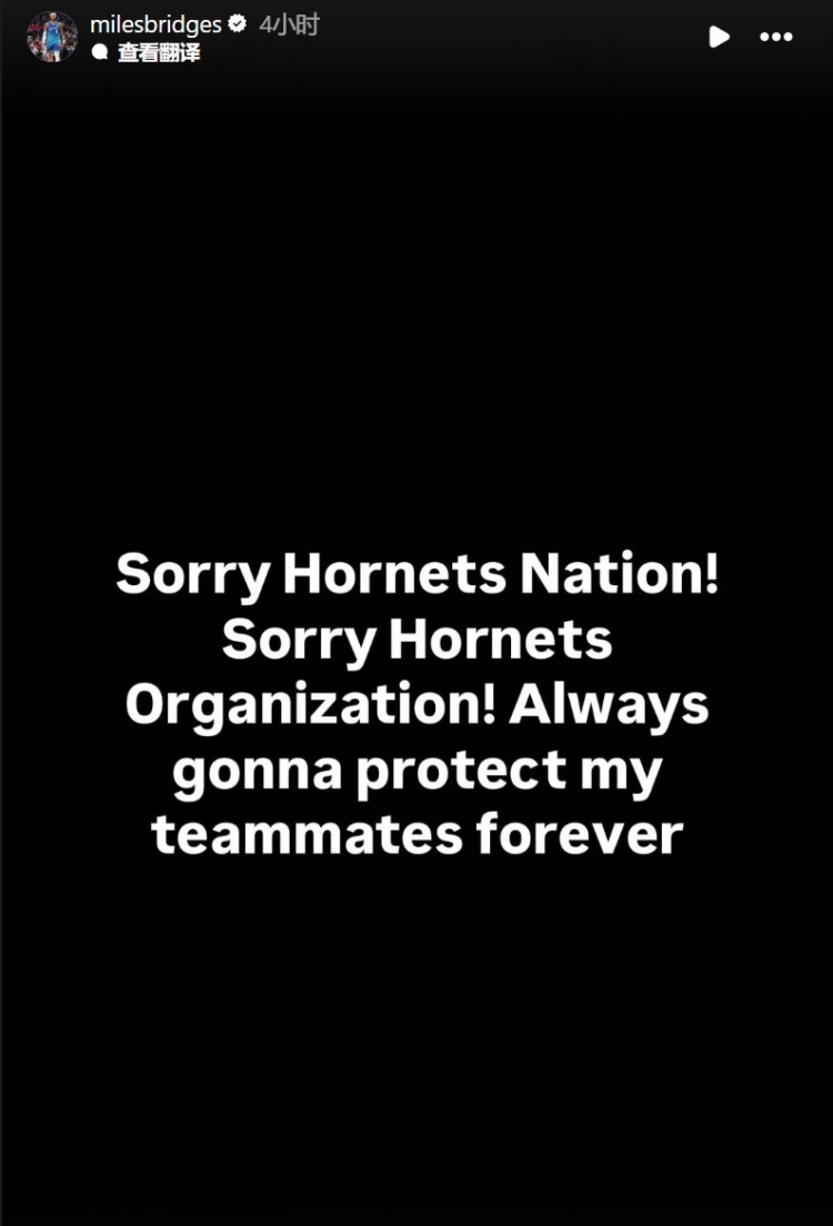 賽后,布里奇斯在INS發(fā)文道:“對不起黃蜂國度!對不起黃蜂隊!我永遠(yuǎn)都想保護(hù)我的隊友?!?/p>