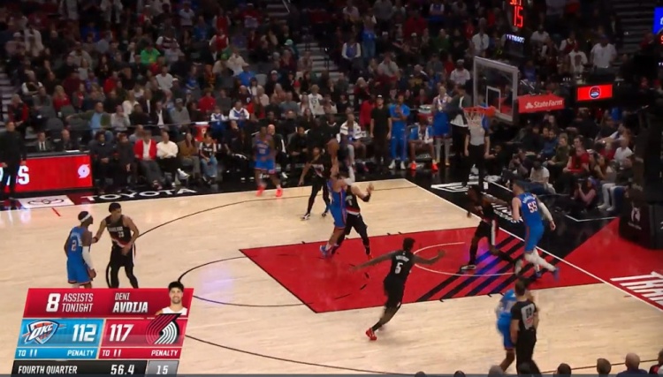 1、比賽剩余55.1秒時(shí),阿杰伊·米切爾上籃,吹罰了阿夫迪亞犯規(guī),雷霆獲得了兩次罰球。