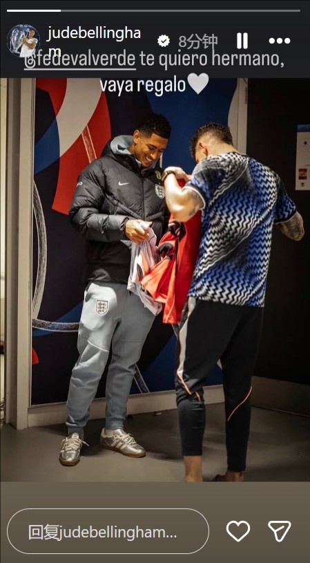 貝林厄姆寫道:“@巴爾韋德,我愛(ài)你,兄弟。多棒的禮物啊”