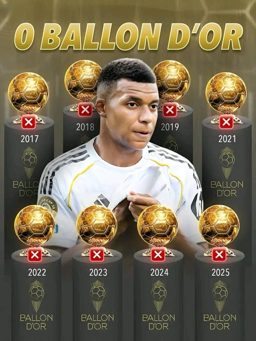 2025年的金球獎(jiǎng)和FIFA年度最佳都已結(jié)束評(píng)選,兩大個(gè)人獎(jiǎng)項(xiàng)姆巴佩依舊無(wú)緣,金球排名第7、FIFA年度最佳排名第3。