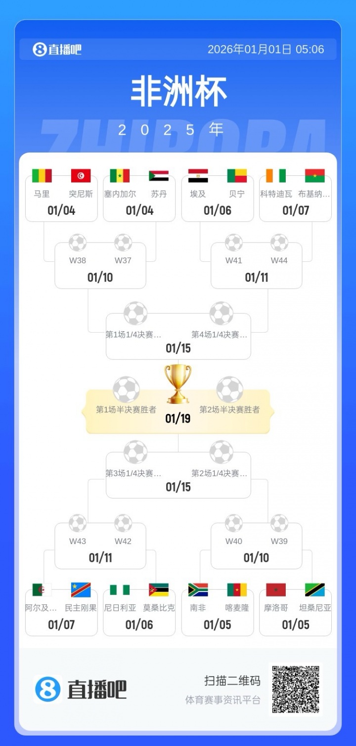 01月01日訊 非洲杯16強(qiáng)對(duì)陣情況已經(jīng)全部出爐,其中喀麥隆vs南非,摩洛哥vs坦桑尼亞。