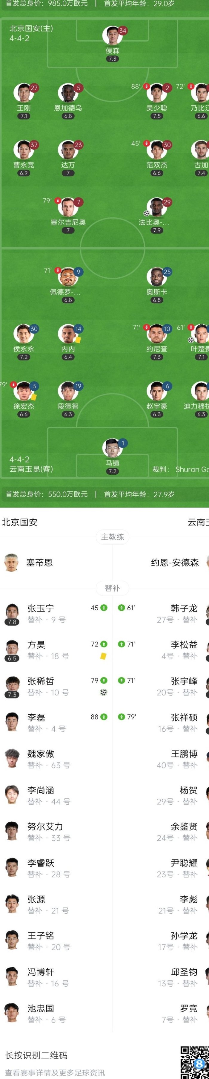 第30分鐘,云南玉昆右路攻勢,約尼查第一下傳中被擋回,隨后人群中將球一捅,葉楚貴點球點附近直接推射破門!云南玉昆客場1-0領(lǐng)先北京國安↓