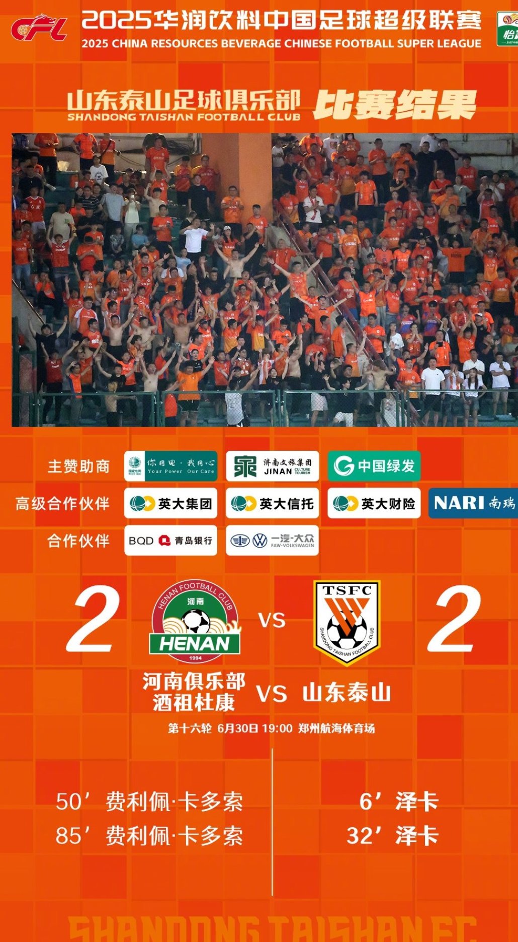 感謝所有遠(yuǎn)赴客場冒雨支持球隊的球迷朋友們。球隊在這場比賽中跌宕起伏,沒有展現(xiàn)出應(yīng)有的技戰(zhàn)術(shù)水平。球隊會利用間歇期強(qiáng)化訓(xùn)練,重整旗鼓,堅定信心,激發(fā)斗志,迎接下半程的聯(lián)賽。 ???