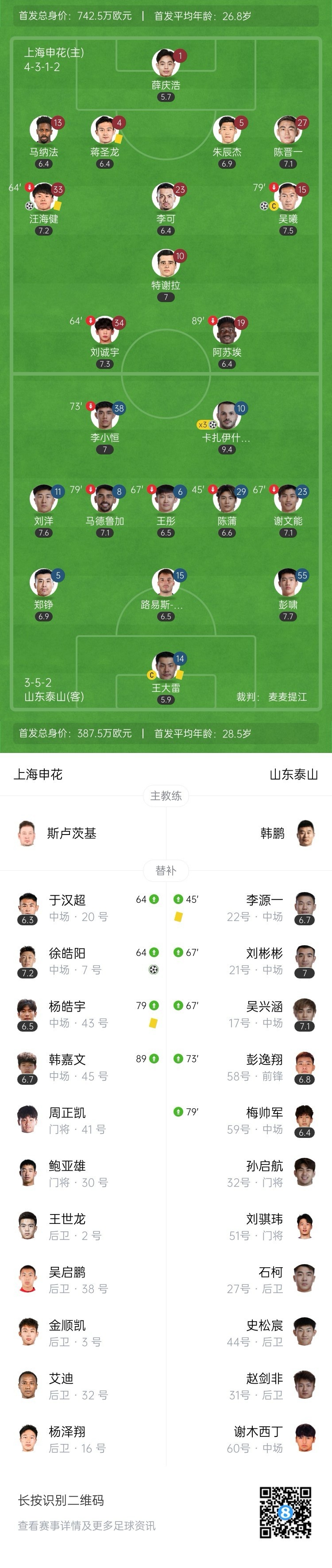半場(chǎng)戰(zhàn)罷,申花暫2-2泰山。